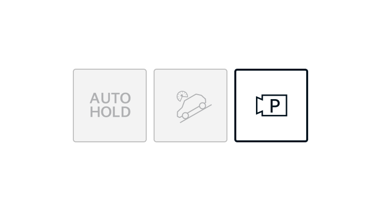 The function is initiated by pressing and holding the parking/view button and then releasing the brake pedal.