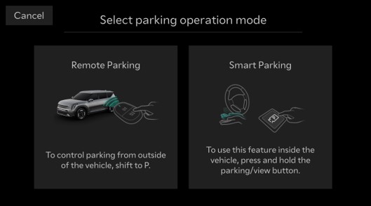 TYou can navigate to a parking space from inside the vehicle using the parking/view button, then exit and activate the function from outside the vehicle using the Smart Key.